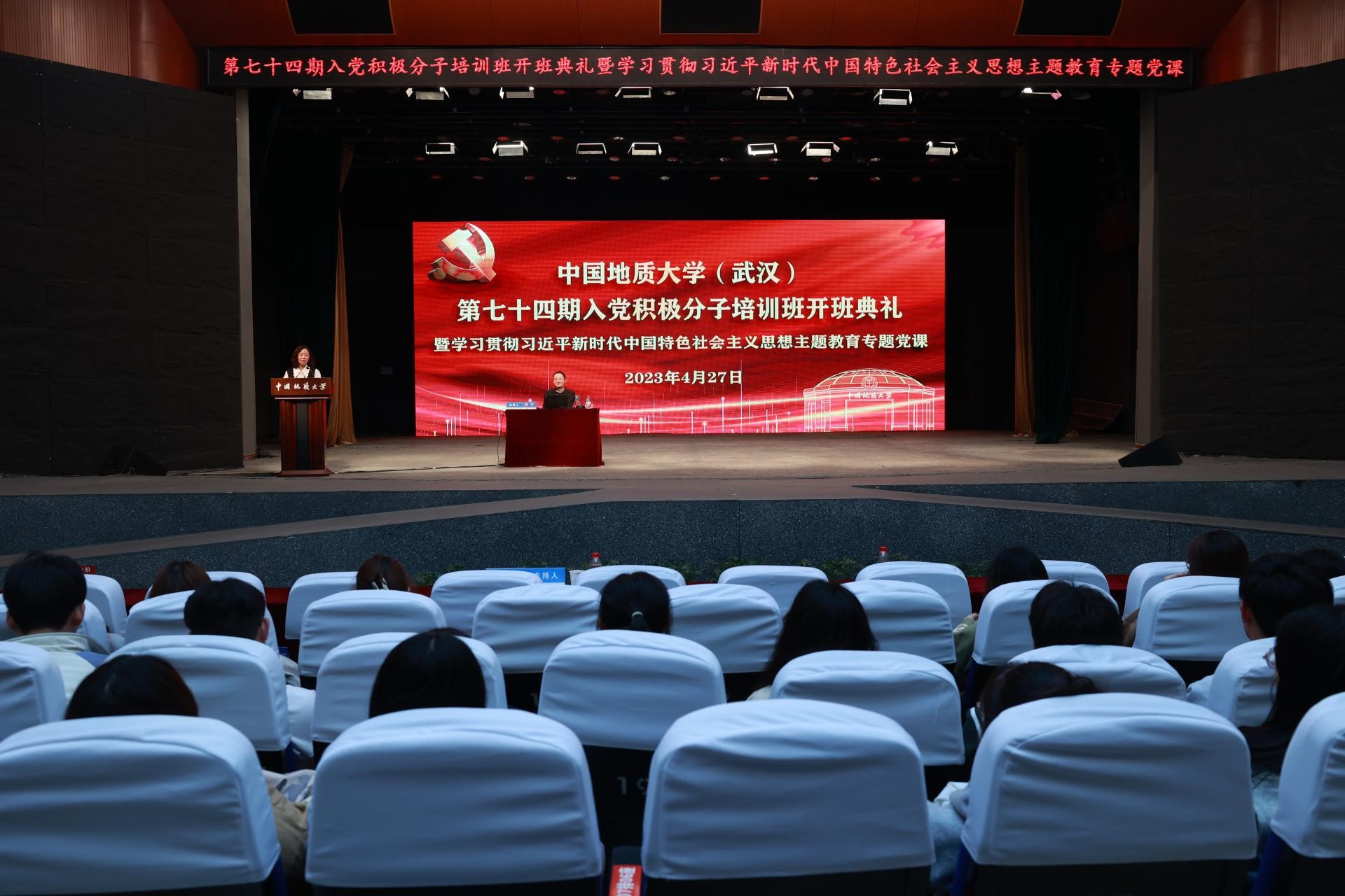 (武汉)第七十四期入党积极分子培训班开班典礼暨学习贯彻习近平新时代中国特色社会主义思想主题教育专题党课在弘毅堂举行。