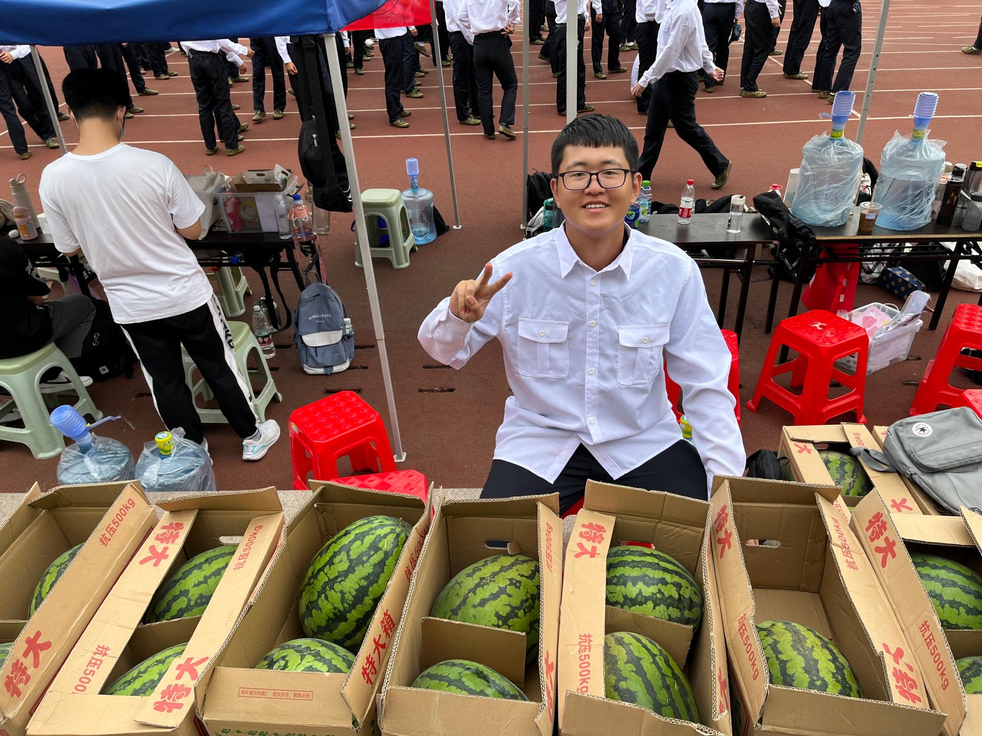 学院为2022级参训学生和教官们送上水果等慰问品并进行亲切交谈,为炎炎夏日增添一抹清凉。同时,叮嘱大家做好防暑和疫情防控工作,注意劳逸结合,保护自身安全,并表示学院会全力做好军训后勤保障工作,确保军训工作顺利开展。