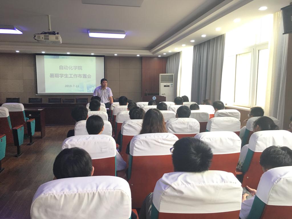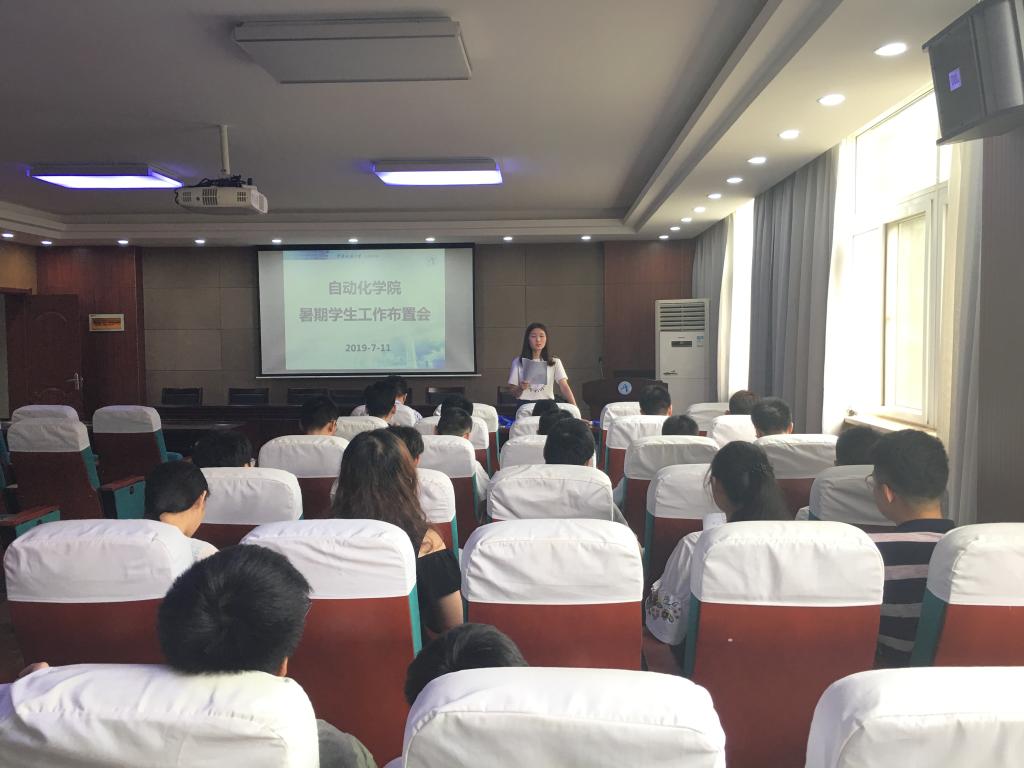 2019年暑期学生工作布置会在信息楼310报告厅召开。党委副书记何建新,辅导员许彦、刘一荻出席会议,许彦主持会议。