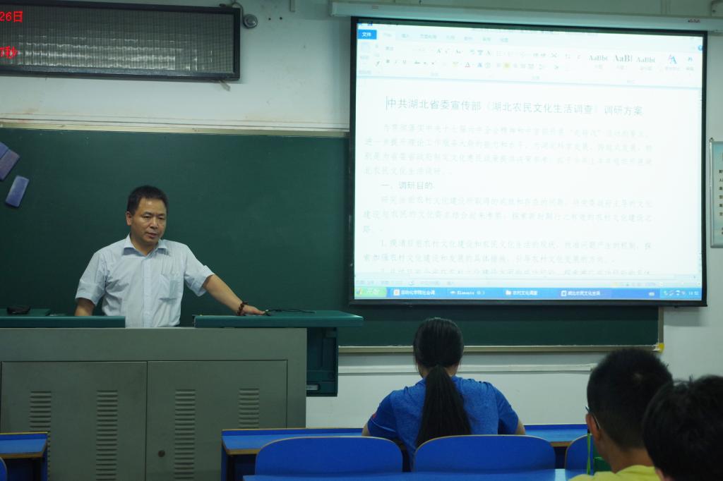 卢文忠教授具体指导了调查方法。卢教授从调查目的、对象、内容等方面进行讲授。卢教授建议,社会调查需要做好准备工作,调查时要尊重当地习惯,注意语言技巧,尽可能多的收集材料使调查结果真实可靠,多关注热点问题。最后向同学们展示了调查报告和问卷供参考学习,并耐心细致地解答了同学们的疑问。