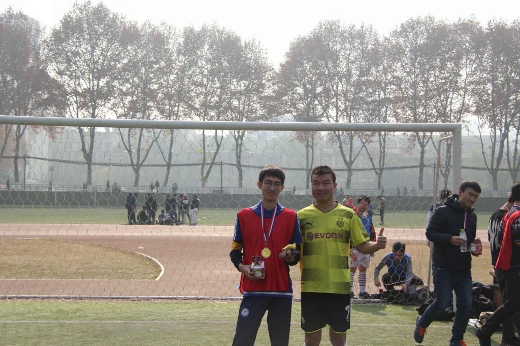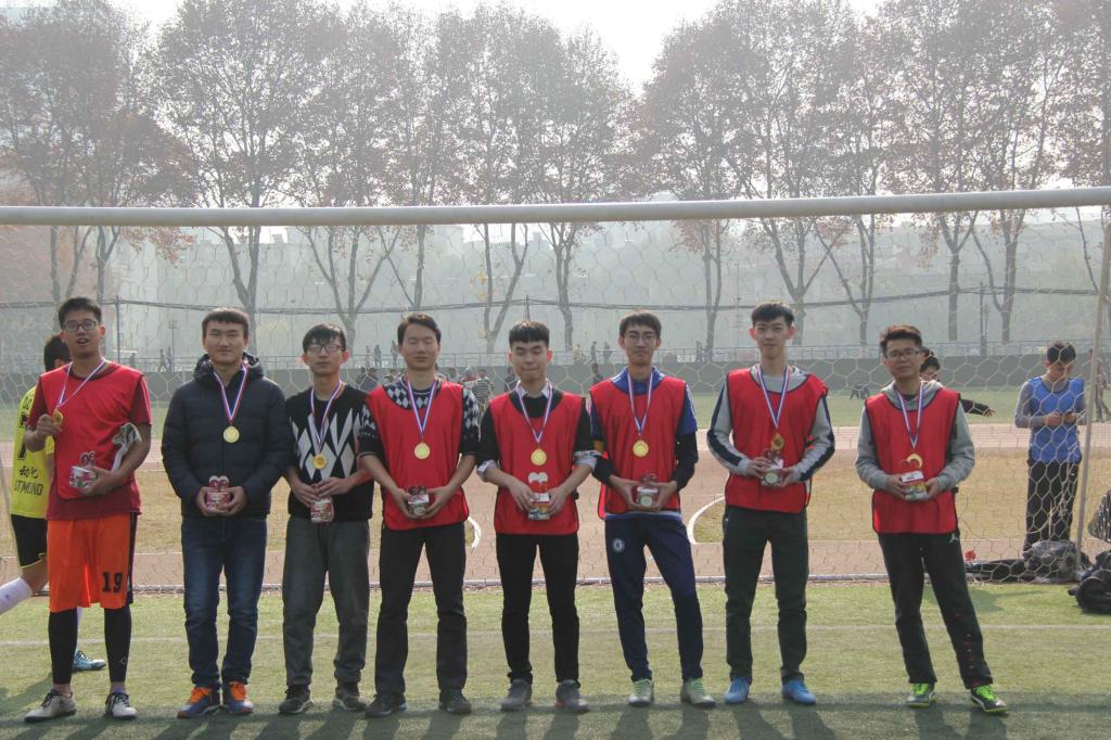 各年级16位足球爱好者,组成红蓝两支队伍进行足球对抗赛。自动化球队王召辉、丁呈祥、毛怡冉担任裁判,上午10时40分,比赛正式开始。随着裁判的一声哨响,蓝队率先开球,比赛刚开始,双方球员便展现出极强的求胜欲望,在场上开展了激烈的拼抢。比赛的前十分钟,蓝队率先进入了状态,队长毛宇涵多次利用出众的个人能力完成过人突破造成威胁,而比赛进行到第20分钟时,蓝队的进攻也终于收到了成效,毛宇涵抓住对方后防的一次失误,在对方后场断球后打门得手,攻入了比赛的第一粒进球,也为球队带来了领先,场上比分被改写为1-0。此时红队球员才逐渐进入了状态,反击越来越犀利,比赛进行到第28分钟,红队队长丁佳宁在禁区边缘发现空当,一脚地滚球劲射将球打入死角,顽强地将比分扳为1-1。随后虽然双方攻势依旧强烈但却都再无建树,1-1的比分被保持到中场。